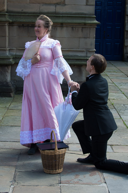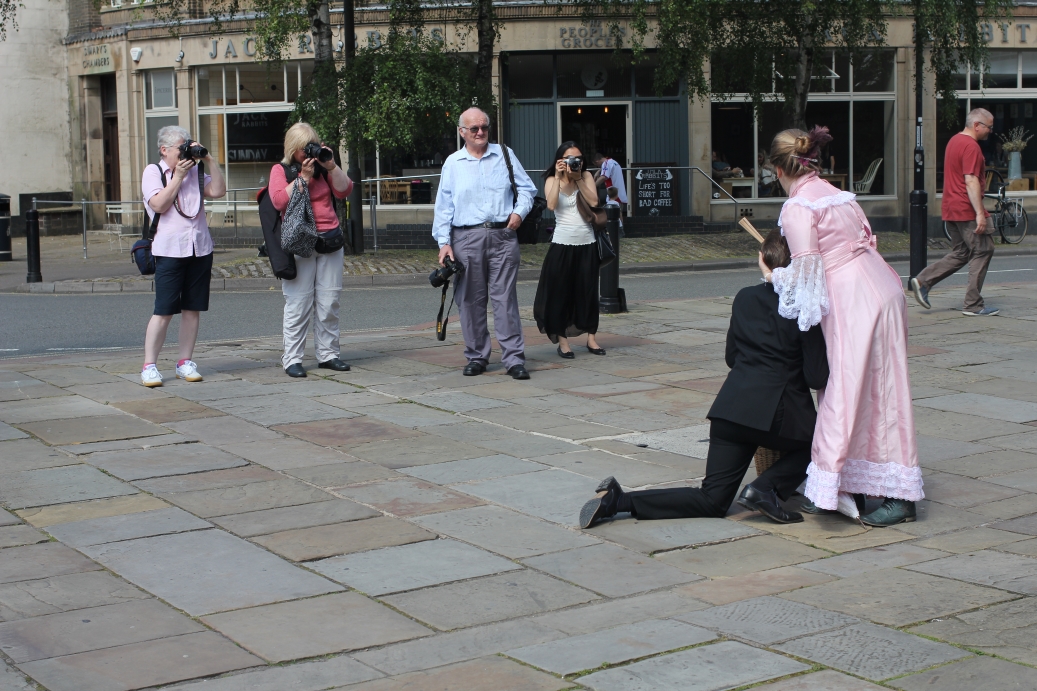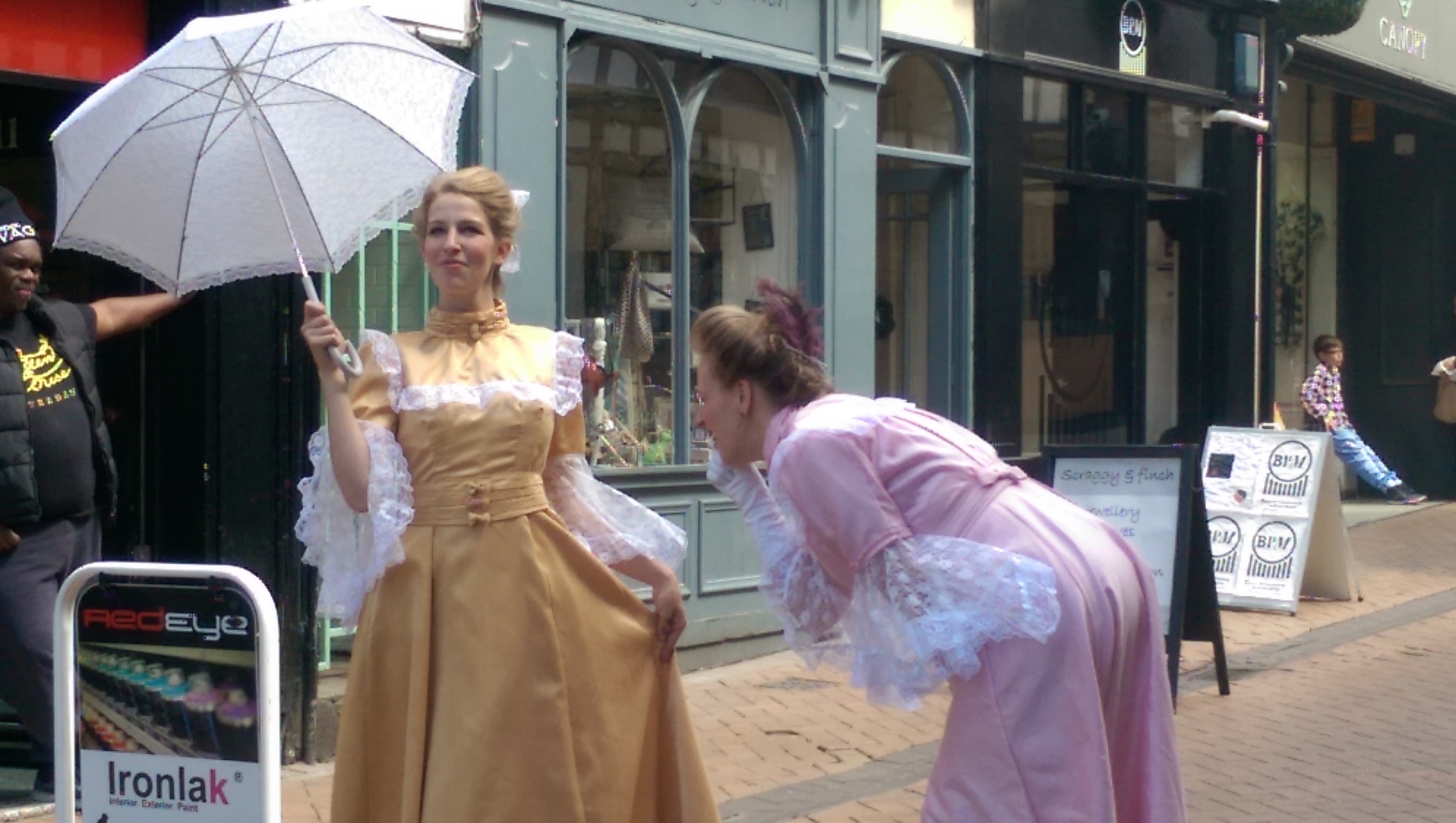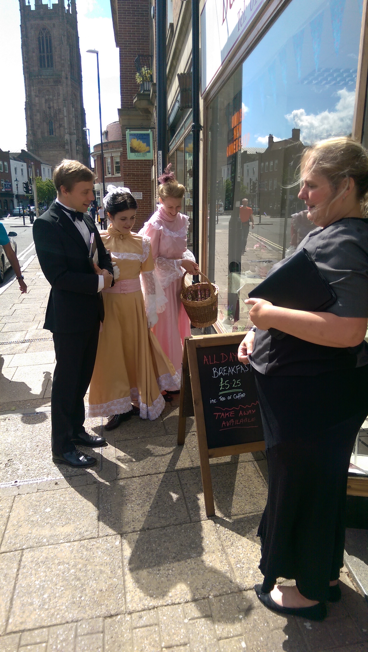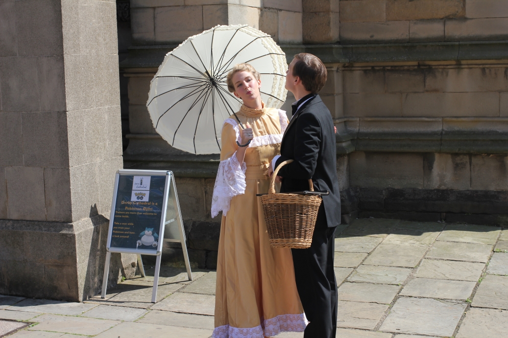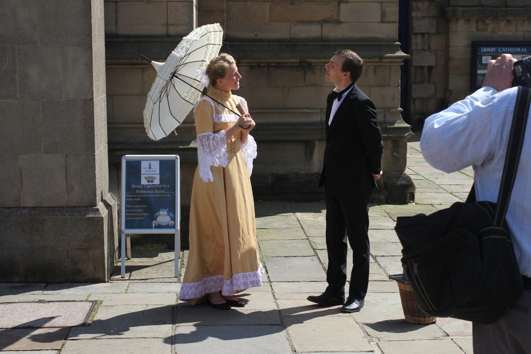 The Cathedral Quarter has been an excellent setting for this innovative approach to street theatre, combining five-minute adapted scenes from the play with characters interacting with passers-by to discuss the surroundings and Edwardian life in Derby. This has helped to bring history to life in the area in a fun and entertaining way. During the ‘Day Out’, our performers engage and interact with visitors – staying in character to talk about some of the area’s important landmarks and places of interest.